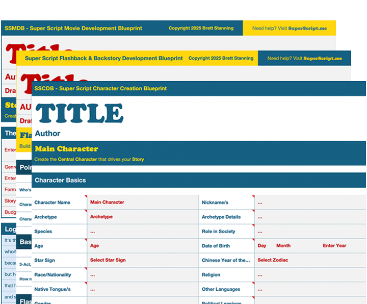Get the full suite of Super Script Movie Development Blueprints in this bundle and build your Concept, Story Structure, Character and Backstory with confidence.